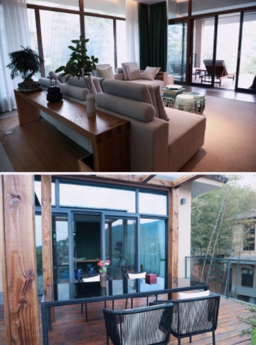 房间里设施和很齐全,超大客厅带上家人时而在此喝上一杯茶眺望远处的山景何尝不是一种享受。