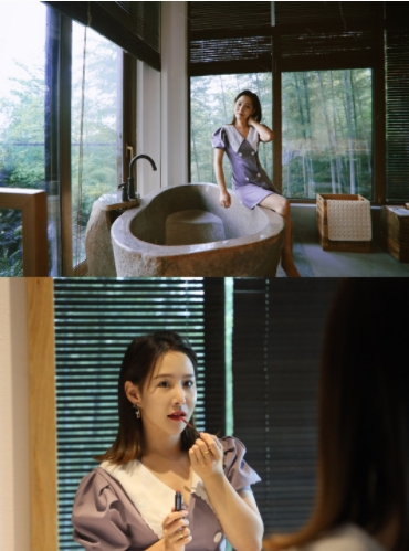 房间内最美的就是落地窗前的大浴缸了,夜晚望着星空泡澡,抛开一切烦恼忧愁。