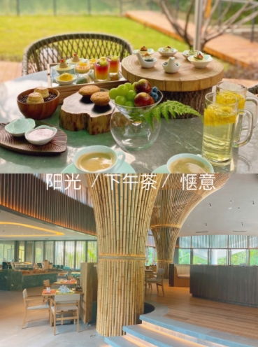 温泉泡累了可以去湖边餐厅吃个下午茶套餐,放松心情聊聊心事