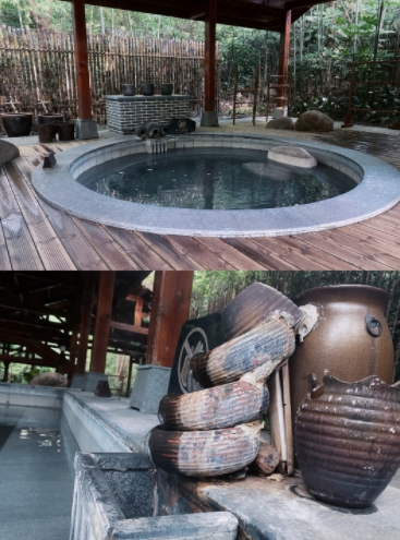群山环绕,环境优美,各种池子也算是一应俱全。远处还有私汤包房可供一家人使用(额外收费)私密性很好。