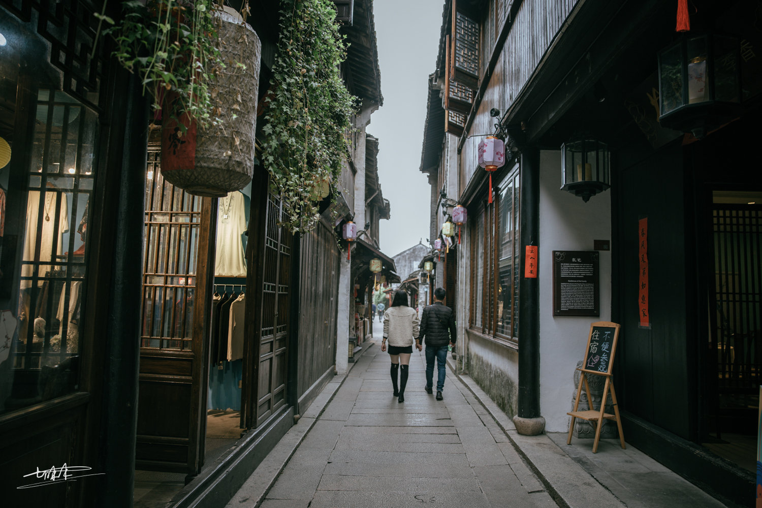 这是夜色中的梦里水乡,真不失“中国第一水乡”这称号。曲径通幽的深街长巷,一幢幢青砖黛瓦的木楼和一户挨一户的沿街商铺,热闹中彰显着繁华。