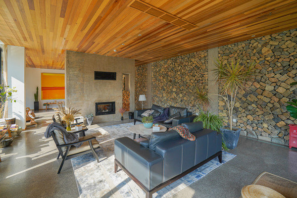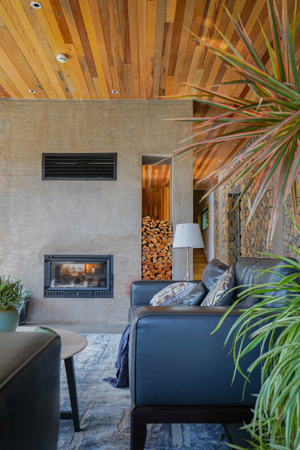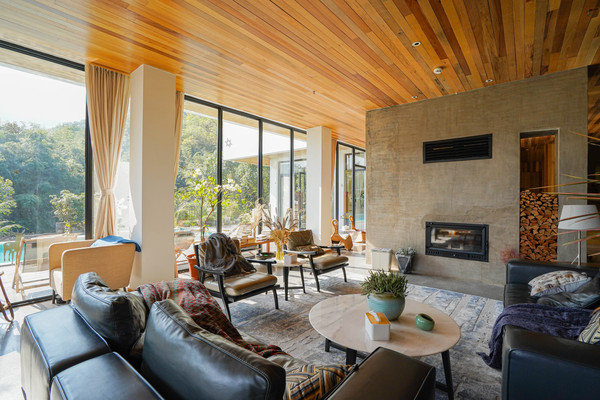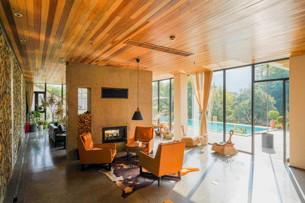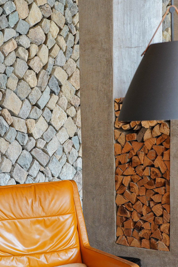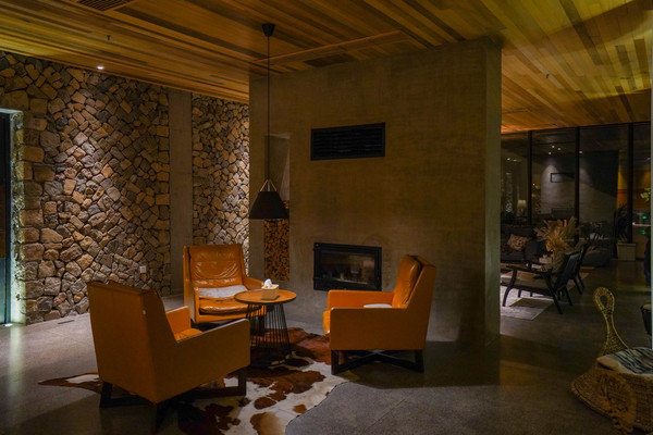 民宿的大堂区域我个人觉得更偏美式风格,皮质的沙发搭配冬日暖暖的壁炉,设计感十足。又搭配了一些乡村独有的装饰品,例如石头、木头堆砌的装饰墙面,干花插花等等,现代风与乡村风相互碰撞搭配的意外融洽。