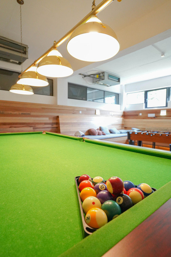 负一楼还有一个休闲游戏室,可以和朋友玩桌游、打电玩、打台球,还可以唱KTV,也太适合聚会包栋包场了吧。