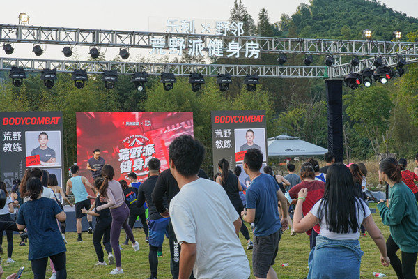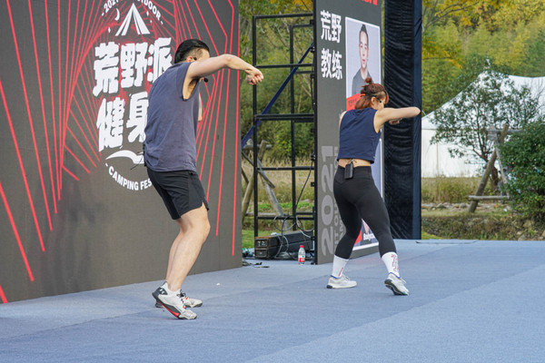 第一次在环境这么好的地方进行集体运动,真是将健身房搬到了荒野。跟着台上的荒野教练运动,大汗淋漓,绝对是一次特别的体验。