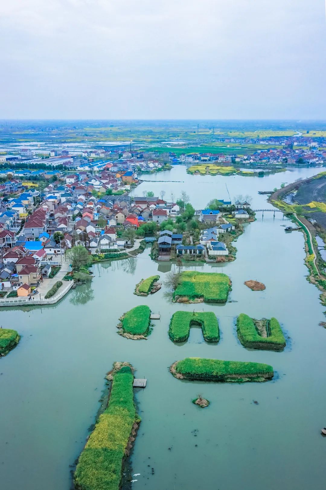 没有一个地方能把油菜花和水景结合得如此到位了,独特的垛田地貌,蜿蜒无尽的河叉。