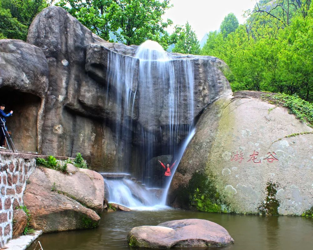 听莺莺歌声,赏潺潺细水,近可观千年巨石