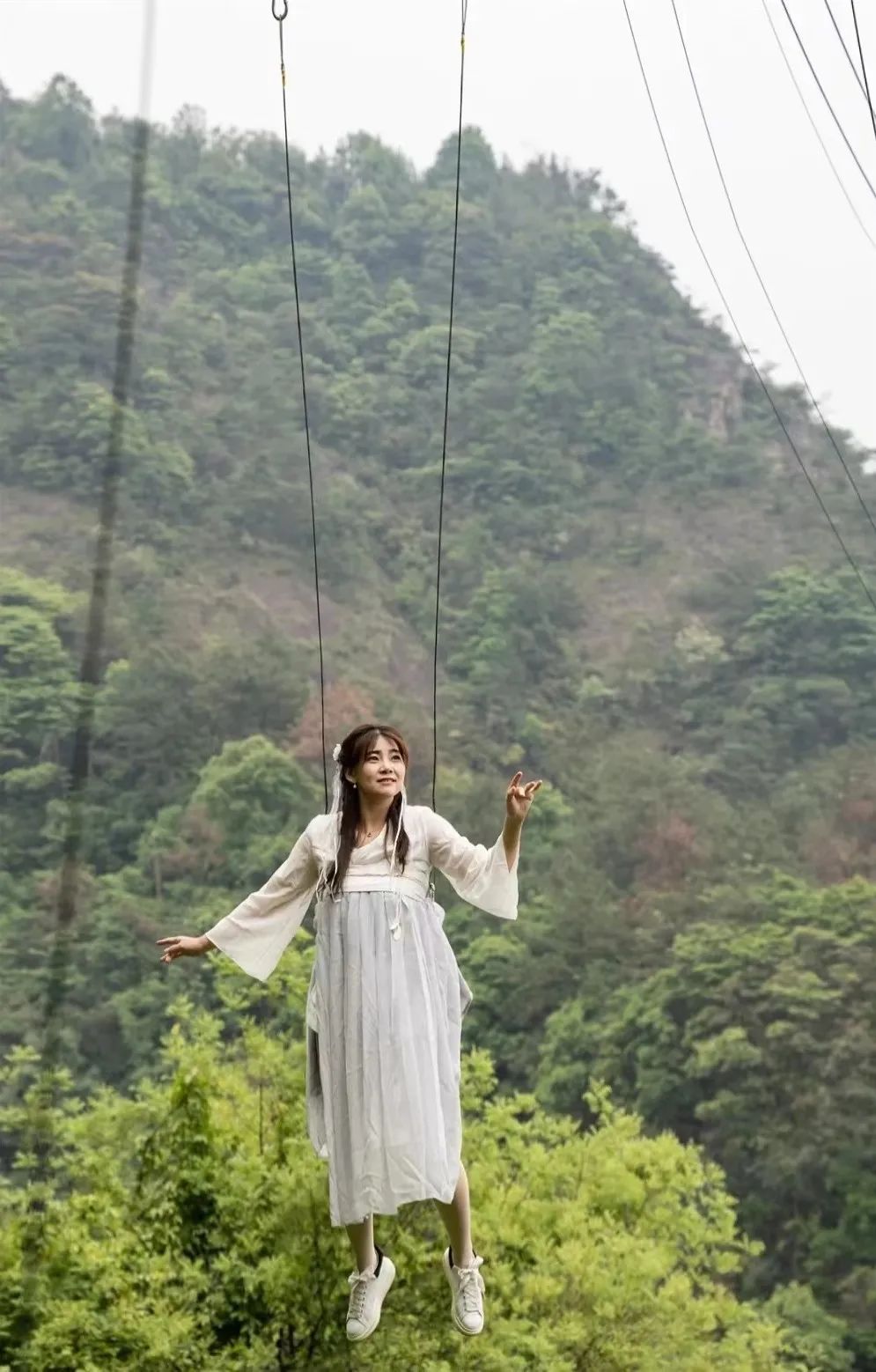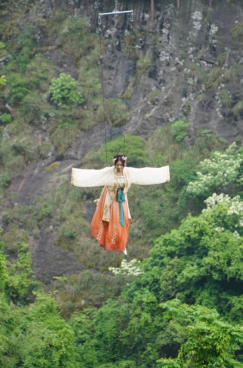青山绿水间,借威亚一跃而起,颇有几分“天下英雄出我辈”的豪情,一代大侠就此诞生。