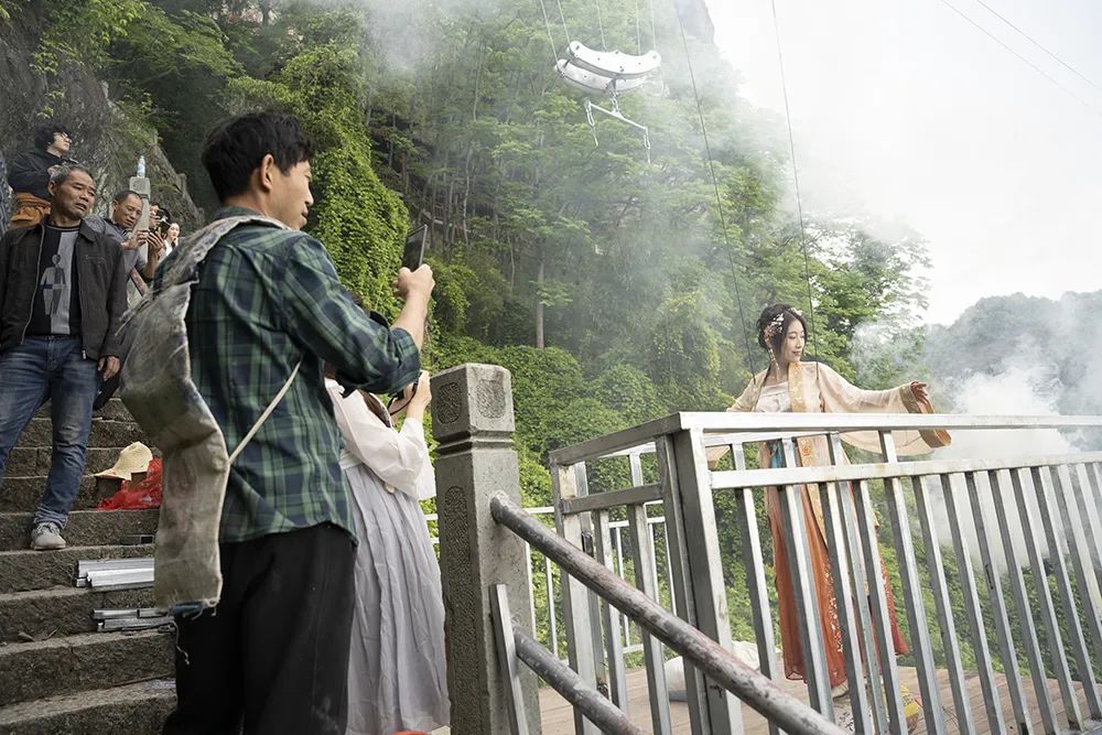 4月18日,林沁儿、暴走的莉莉酱、背包客紫漫、小飞侠、白洋-Aries、沈奕铭,六位来自抖音、微博、小红书等平台的自媒体旅游达人走进建德大慈岩景区,开启一场悬空穿越之旅。