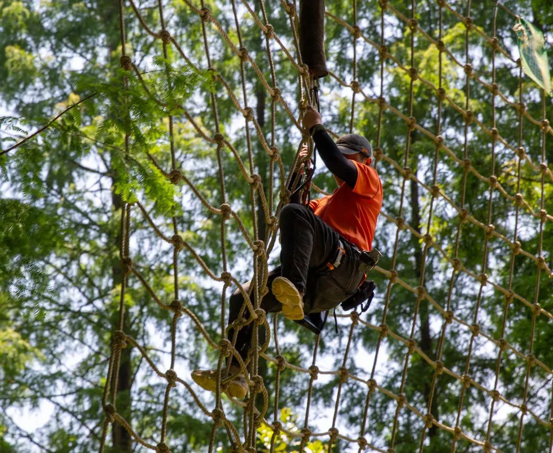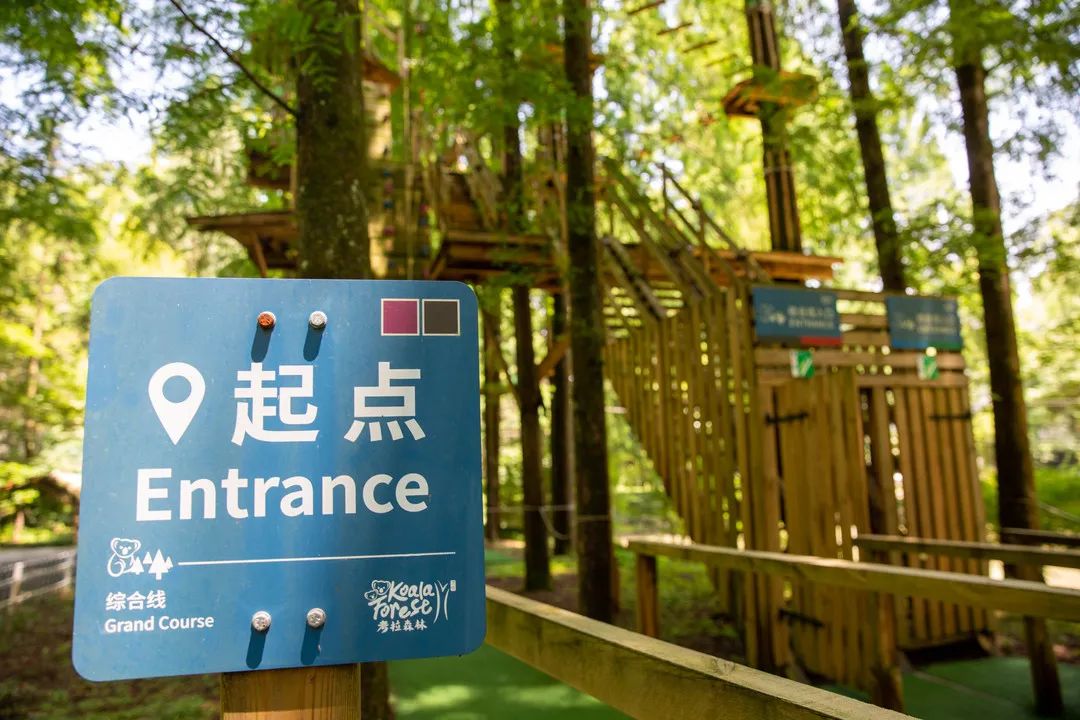 灵栖洞考拉森林丛林探险项目采用法国Koala先进生命线系统,获欧盟EN15567标准认证。无论大小朋友,都可在森林中享受攀爬、飞跃、蹦极的乐趣。