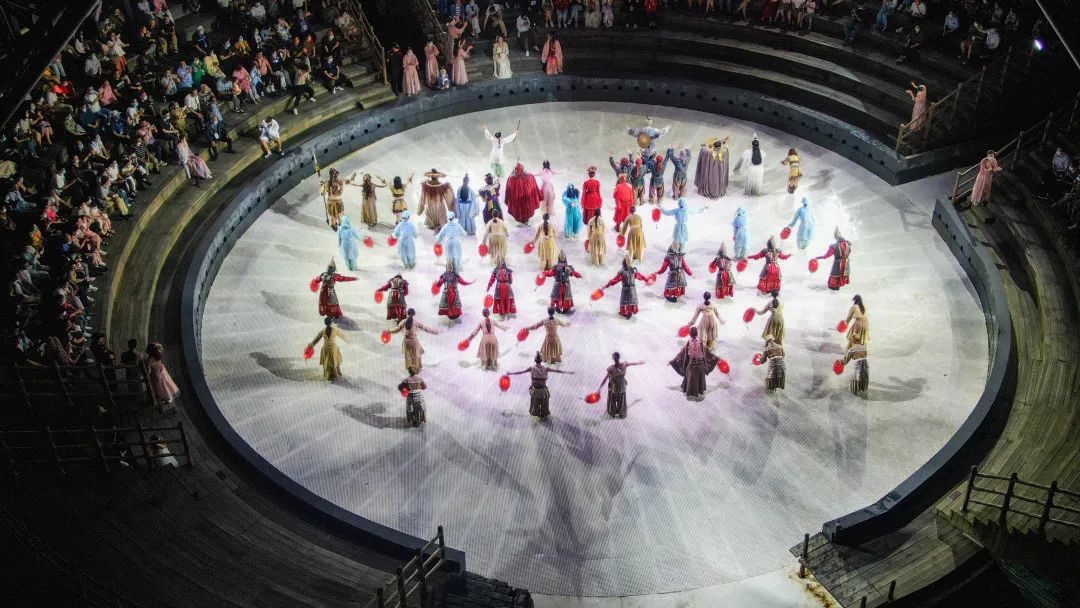 《江清月近人》是一个独立设置于新安江月亮岛上的大型沉浸式实景演出项目,整台演出由“江、清、月、近、人”五个演区构成。