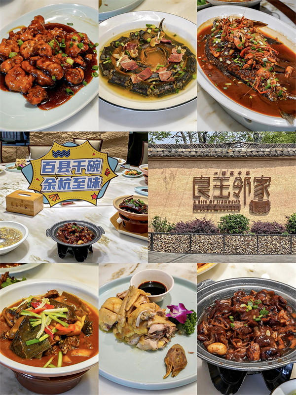 良渚古城遗址公园游玩结束后,可以去良玉邻家吃午饭饭哦!这家农家菜可以常年名列DP“余杭区农家菜热门榜”的餐厅哦!软糯可口的卤大肠,鲜嫩紧实的白斩鸡,香浓鲜美的家烧三角鳊鱼……菜品非常丰富好吃~