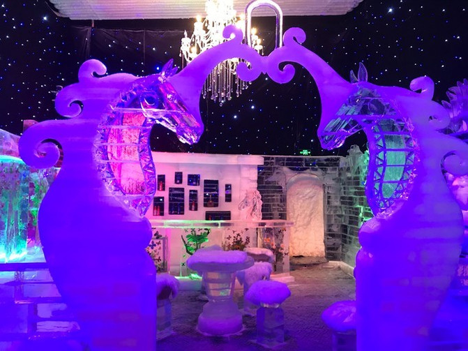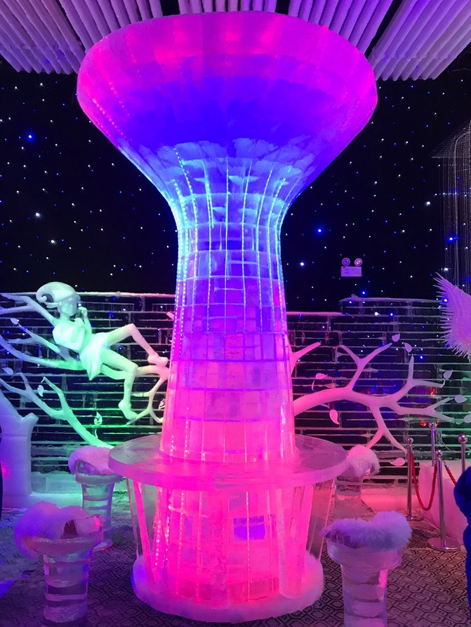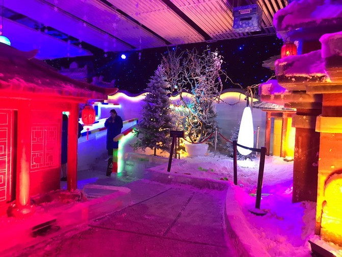 这里有零下8度哦,跟外面接近40度的高温相比,简直不要太凉爽。羽绒服一定要穿,不然进去待不了5分钟,就会被冻得哇哇叫。