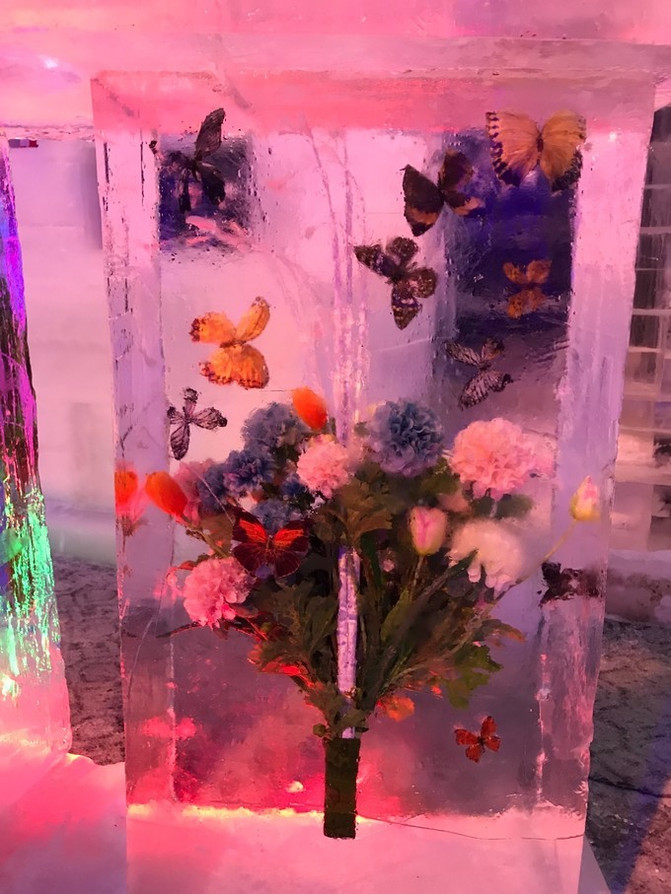 这个冻住的冰展,真的超级好看了,在冰世界里展现出一副春天的生机盎然。