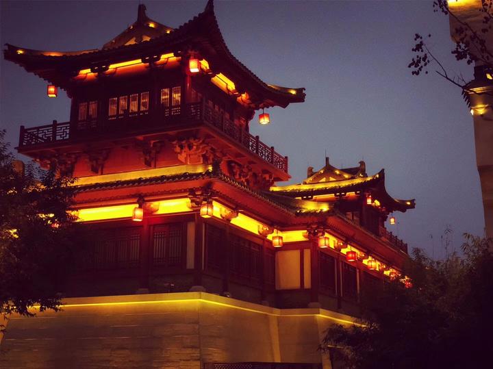 水面碧波荡漾,映照着两岸灯光,“海客谈瀛洲,烟波浩渺信难求”我想这里大约就是梦想中的江湖乌托邦吧~
