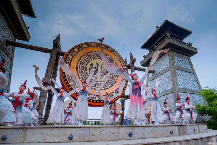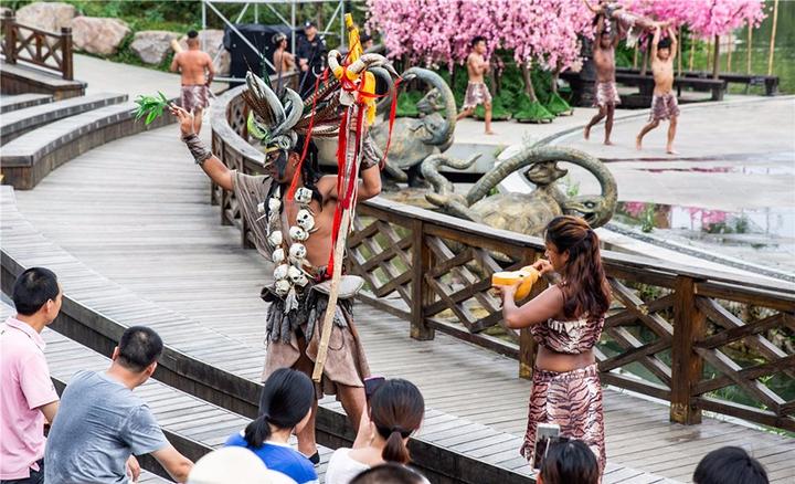 下午16:30,太极广场上的祈水仪式正在火热上演,身穿原始服装的演员们在广场上还原古代祈水场景。