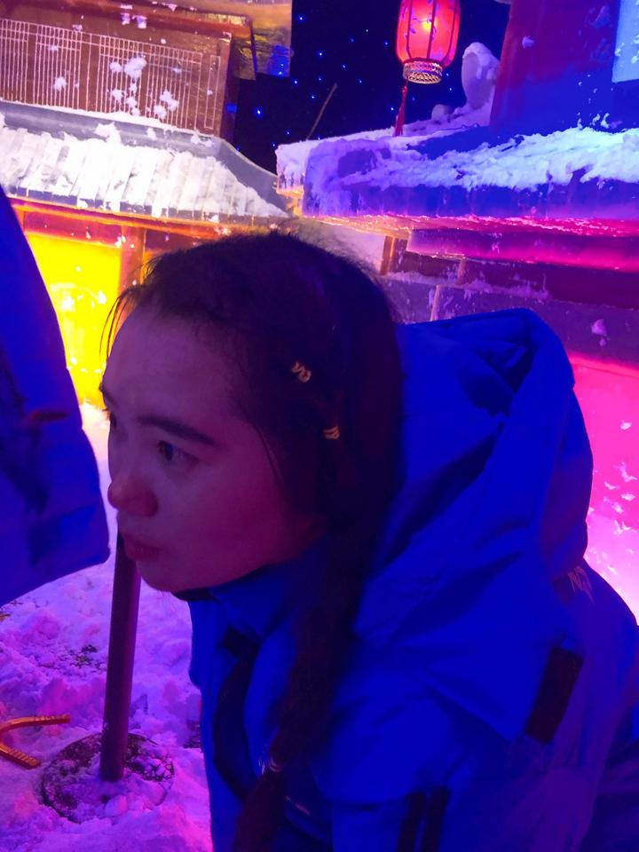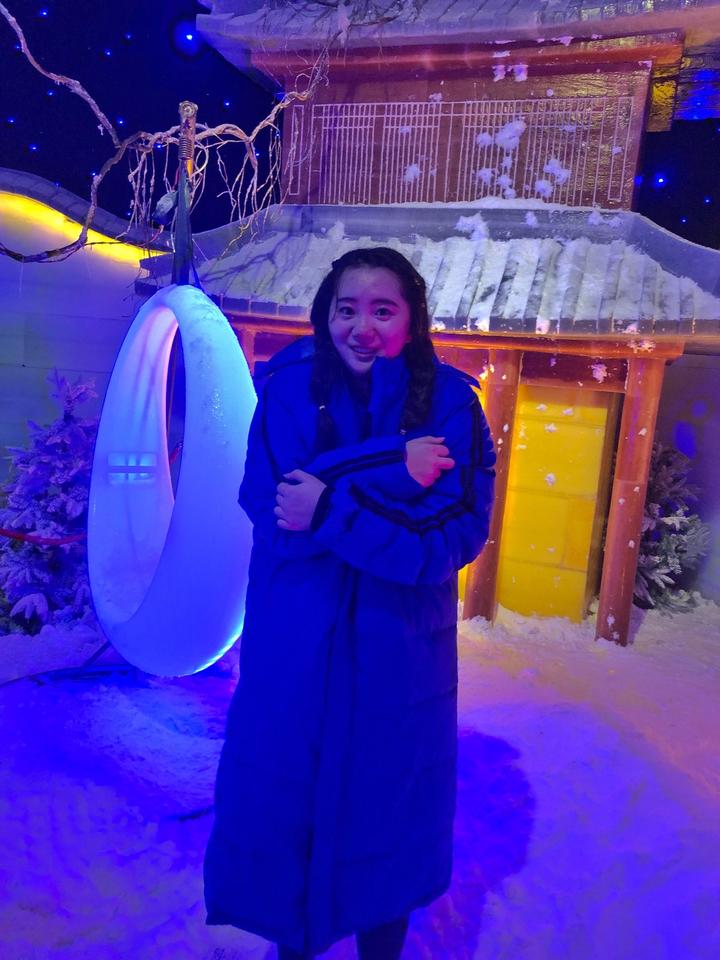 仲夏夜,三伏天,周六当天的室外温度足足有38℃,人在屋外恍如置身烤肉架,我们刚去到冰屋门口,竟然让每个人都穿上羽绒服!!!我的天三伏天穿羽绒服,结果工作人员说冰屋的室内温度只有-8℃,夏装进入肯定是受不了的。