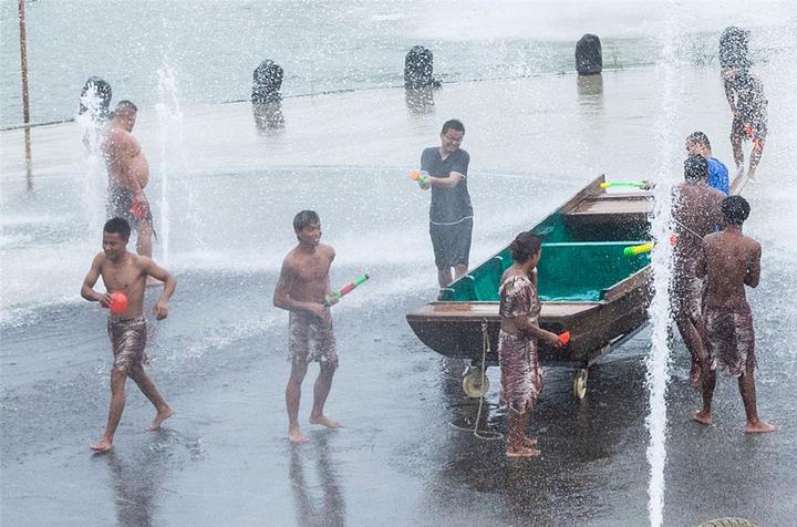 可惜自己没有另带一套干净衣服,不然也想在这般闷热的天气里,一起进入广场,加入泼水大战!