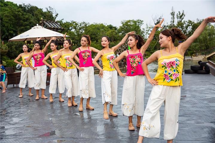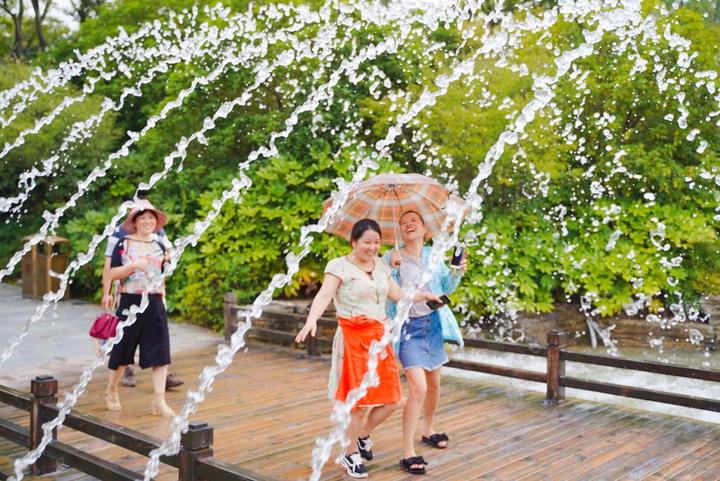 每天下午这里都会举办泼水狂欢,游客和演员们一起在广场上欢乐互动,激情泼水,清凉一“夏”!