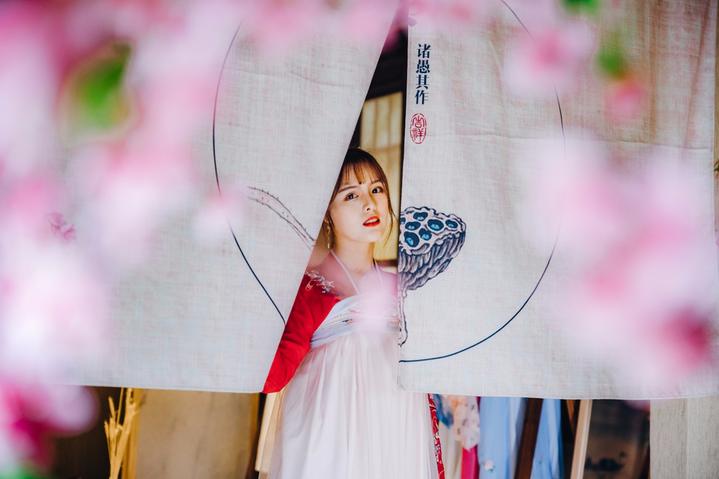 在桃花坞换上一身雅致汉服,裙裾摇曳间仙气十足。