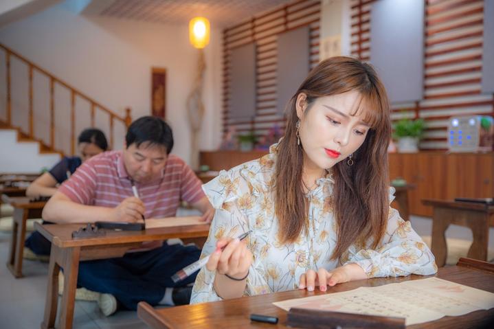 在乐道堂静心抄经,一笔一划里都是中国之神韵。