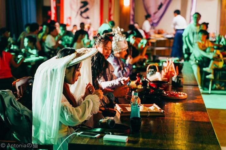 观众的座位也是根据派别来,我们被安排在了古墓派一桌,旁边的小姐姐超喜欢小龙女,开心的不行~