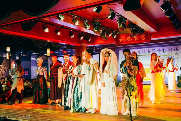 伴随着用餐的尾声,新一派的武林盟主也被推选出来,我们古墓派惜败给了峨眉派~可惜可惜,但是兴致仍然不减,江湖间,都是讲义气!我们一行人也结束用餐,去赴一场太极广场的盛大演出。