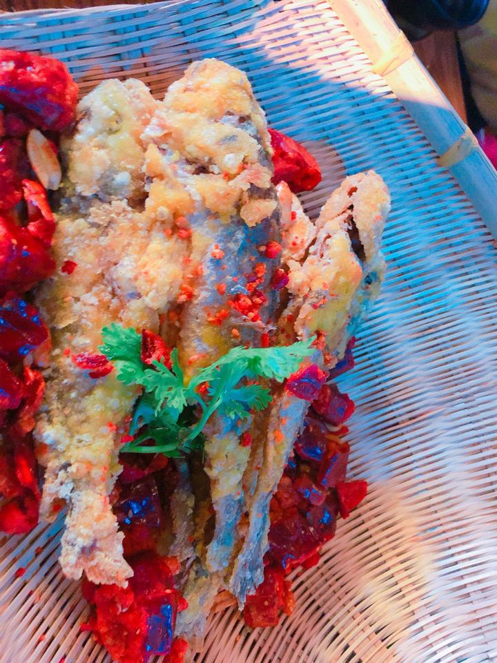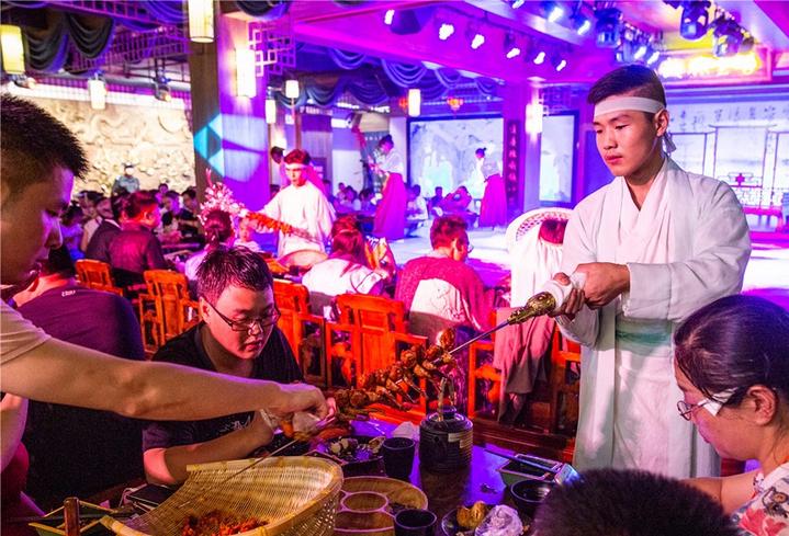 “北冥有鱼,其名为鲲,鲲之大,一锅放不下”随着大当家的介绍,一行武林女侠手持串有烤鸡翅的宝剑轮番登场,香气扑鼻,令人垂涎。