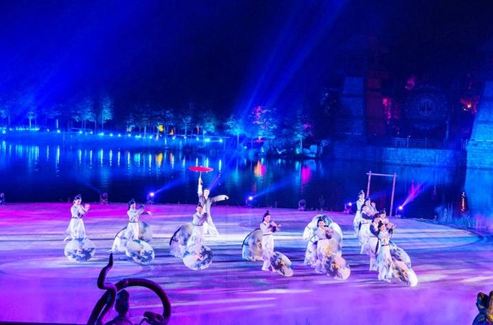 撒吉盐 情景舞台表演,盐是人类不可或缺的生存物质,在盐宫由演员以现代舞演绎惊艳飘洒的洒吉盐表演,杂技与声光电的融合。