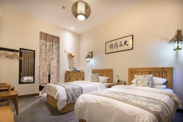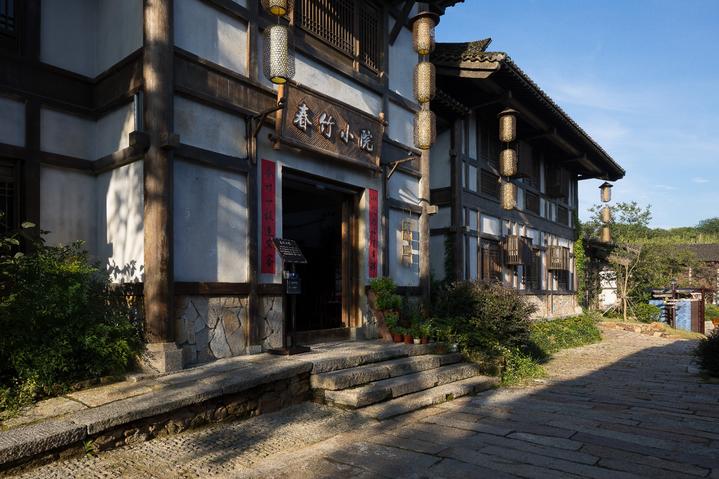 这里的一砖一瓦,都透露着魏晋时代的气息。玲珑翘曲、飞檐斗拱、错落有致的山街野局,树影与青苔斑驳在木筋毕露的木质排门和垒石墙壁之上,都带着魏晋时期特有的古朴粗犷。