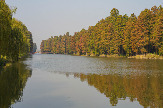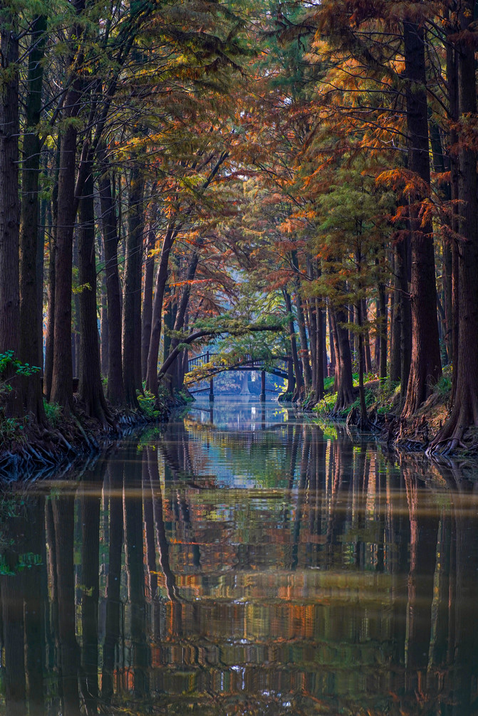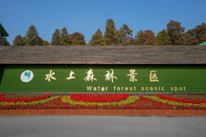 这个季节的水上森林公园格外的迷人,深秋时节将树叶染成了金色、红色,走进景区就像走进了油画中的国度。