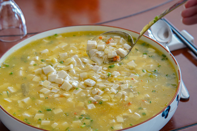 午餐是在兴化市区吃的,来兴化怎么能不吃水里的湖鲜,蟹黄豆腐、鱼圆都是这里必点的
