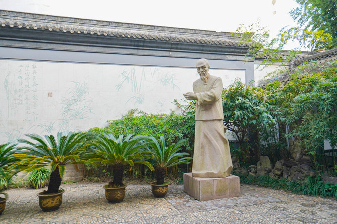 说起郑板桥大家都不陌生,他是兴化人,清代著名的书画家、文学家。展馆的庭院内还有他的花岗岩石像和一副巨大的郑板桥兰竹石大理石壁雕。