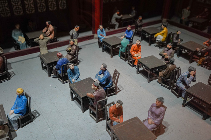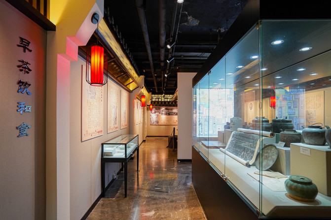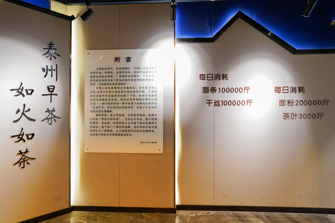 街上有个早茶博物馆,泰州的早茶文化早有耳闻,与广东不同,传统归纳为"一茶三点一面",一茶就是一杯茶和一份烫干丝,一份烫干丝叫一个茶头;三点就是说三种泰州的著名早点,即包子、蒸饺、烧卖;一面就是鱼汤面。