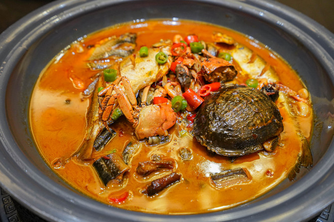 点了一些湖鲜和特色的美食,没想到鸡汤特别鲜,朋友喝了两大碗。
