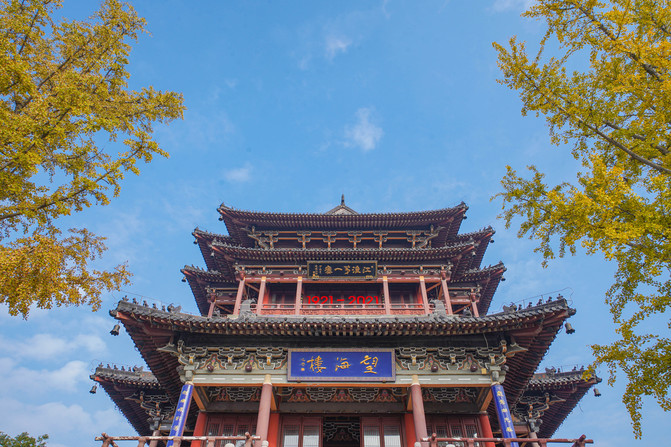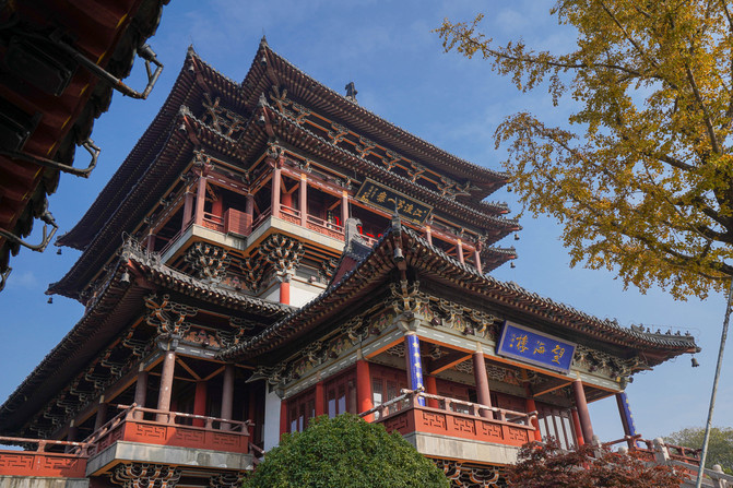 望海楼是泰州的标志性建筑,初建于南宋绍定二年,被誉为"江淮第一楼"。现在的望海楼秉承宋代建筑风格,外观三层环廊,主体色彩取栗壳、青灰二色,古朴典雅。