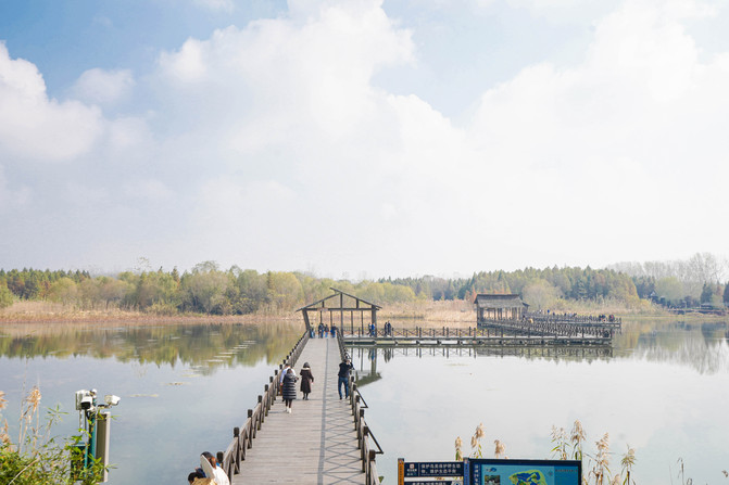 逛完科普馆就可以在景区内走走,这个季节的湿地有种别样的魅力,在水上栈道走走,现在这个季节的湖水特别清澈,可以看到水下的小鱼。