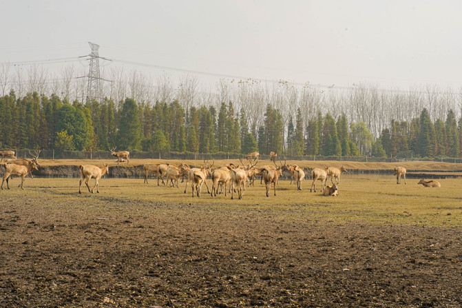 麋鹿观光园也是必去的地点之一,有专门的观景太可以远眺麋鹿和湿地的风光,我们逛到了午饭时间就没去喂麋鹿了。