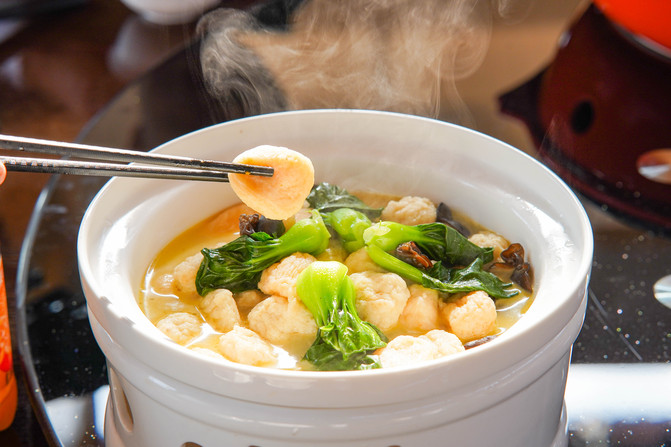 鱼圆早在明末清初兴化就有了,历史悠久,鱼圆雪白爽滑,鲜嫩味美。