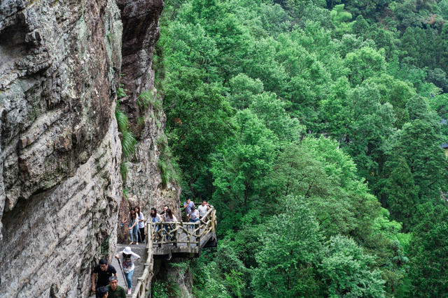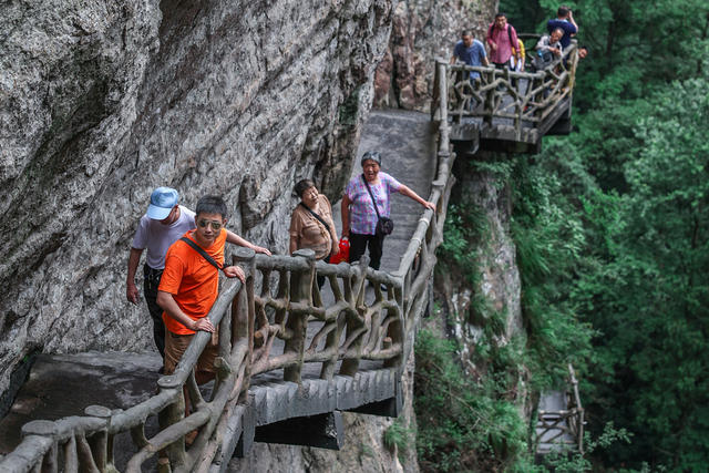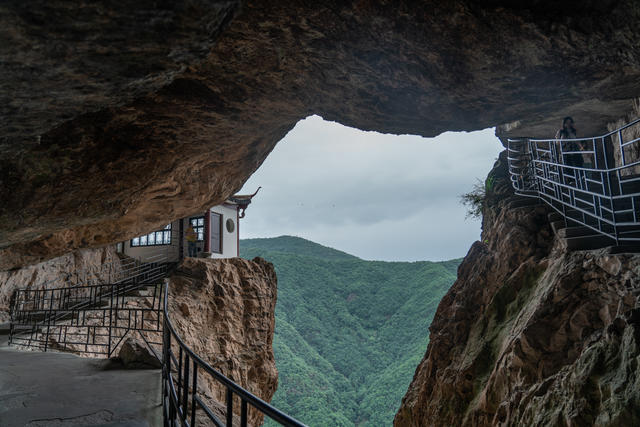 方洞是原路返回,栈道非常险峻,下雨天山道湿滑,要注意安全。