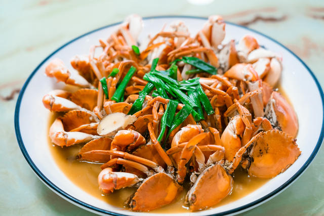 超爱的螃蟹,这里的做法非常有特色,腌制过在蒸,咬上一口,污染用语言来形容的满足感。