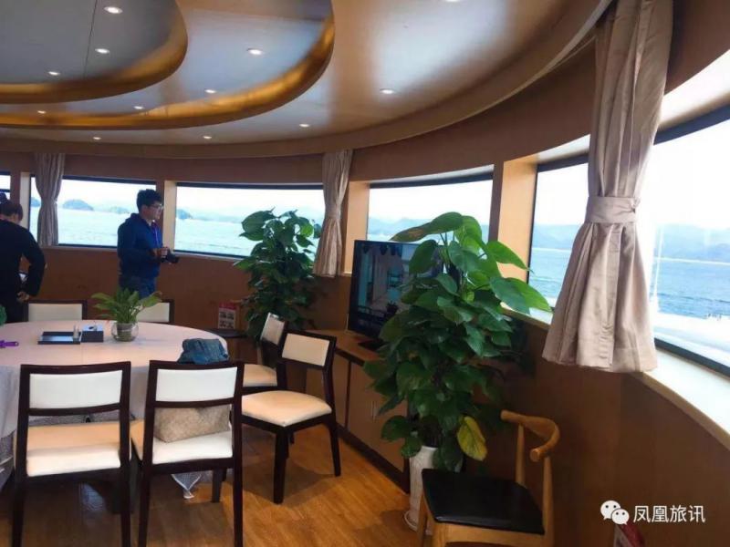 游船风格为现代感十足的“亮眼”游轮型,船体外观极富线条美,登上游船,迎着湖风,徜徉于千岛湖面,这一刻,寄情山水间,情定碧波里。