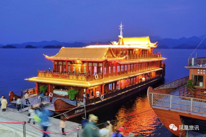 唯有美食与美景不可辜负。在千岛湖,美食与美景可以同时享受。结束了一天满满的行程,A线B线的小伙伴们聚在了一起,登上了夜游船用餐。